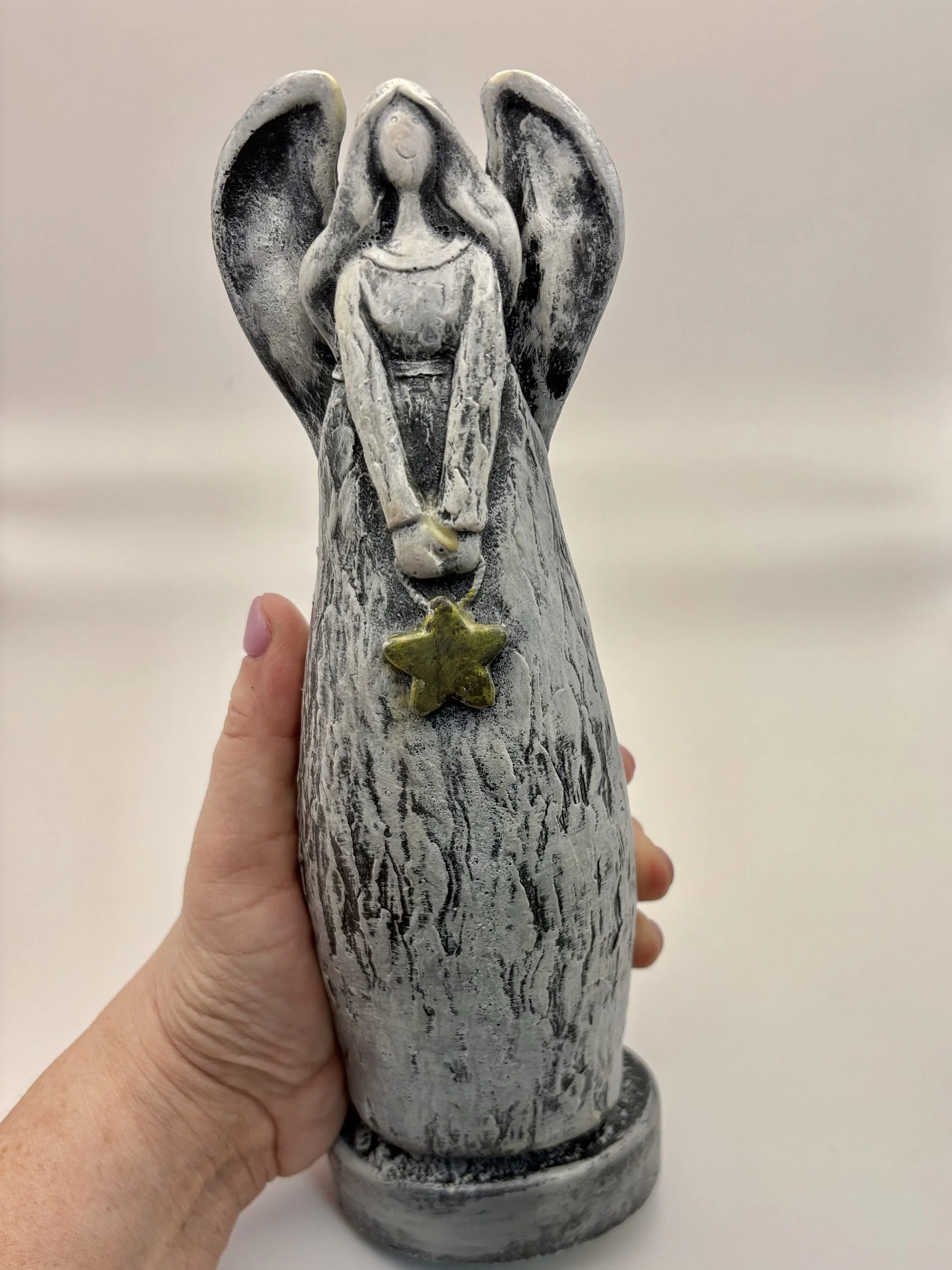 Categories: All Squirrels Birdbath/Bird Feeders Rabbits Sloth Birds Dragons Pumpkins Gargoyles Angels Cows Hedgehogs Foxes Bears Frogs Gnomes Mushrooms Owls Pigs Snails Turtles All / Angel with Star "Seraphina" $45.00